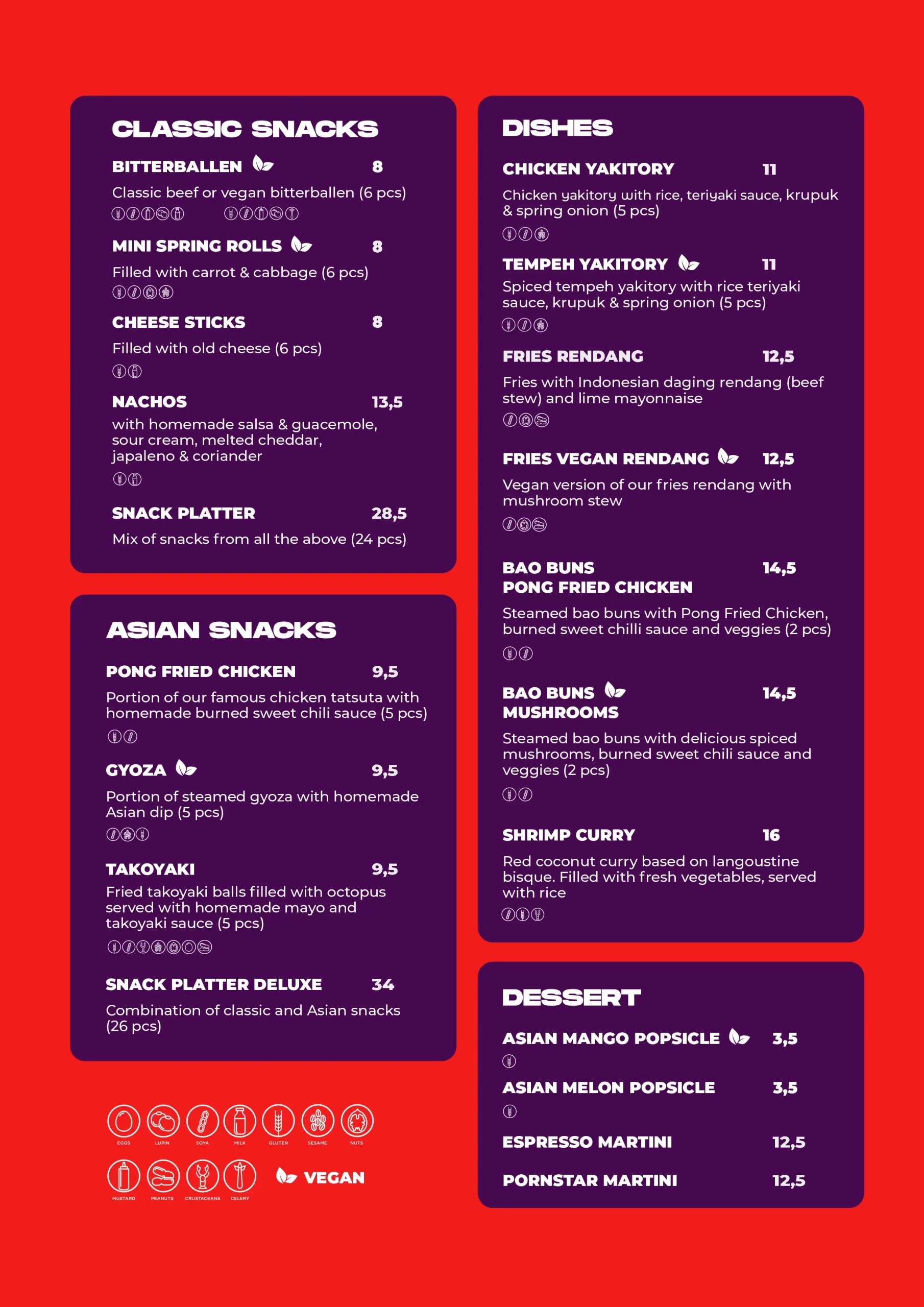 After extensive discussions and collaboration with top chefs, we have crafted this beautiful menu. A selection of Asian street food, along with some classic snacks, offers something for every enthusiast.